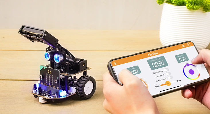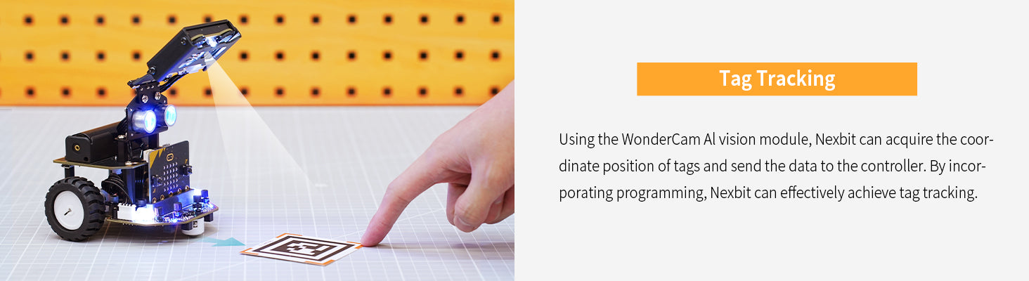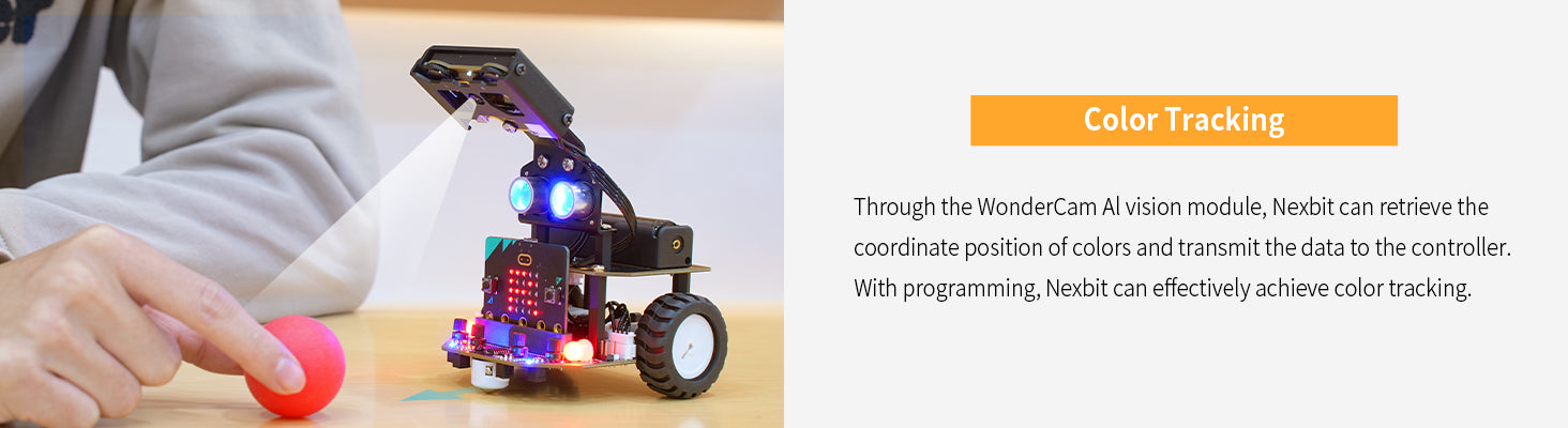 • micro:bit Programming, AI Vision Robot: Nexbit is AI smart robot car powered by micro:bit. Nexbit features a high-performance WonderCam AI vision module with an integrated HD camera. This module enables various AI applications, including color recognition, vision line following, target tracking, and more.