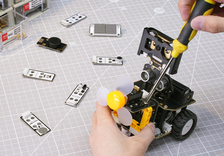 • Powerful hardware: Nexbit boasts an impressive array of features within its compact body, including a high-precision 4-channel knob line follower, an AI vision module, a glowy ultrasonic sensor, an infrared receiver, RGB lights, and other electronic components.