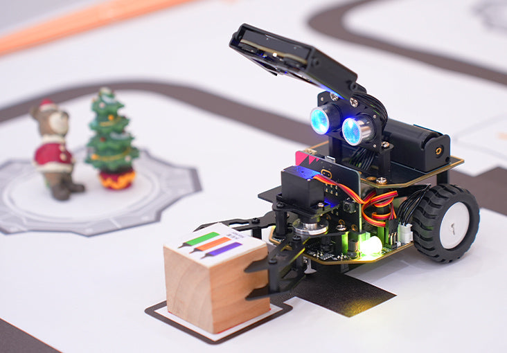 The Nexbit intelligent transportation kit is an AI intelligent transportation demonstration platform that combines Nexbit robots with object transportation scenarios. Through micro:bit programming, Nexbit can perform traffic light recognition, road sign recognition, intersection judgment and autonomous transportation.