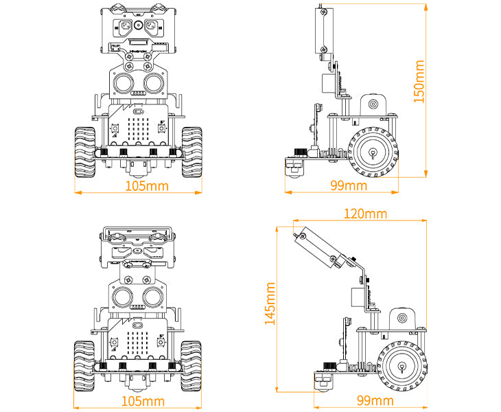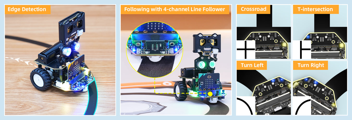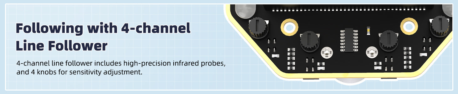 Input4-channel line follower, glowy ultrasonic sensor, infrared receiver and WonderCam vision module