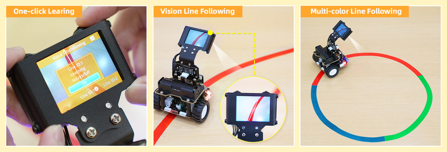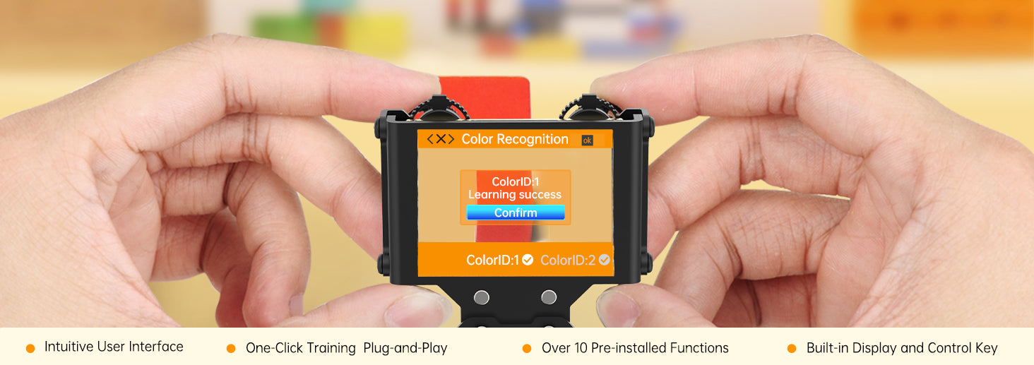 Nexbit's AI vision module is integrated with some learning algorithms, allowing it to complete diverse AI vision projects such as color recognition and vision line following.